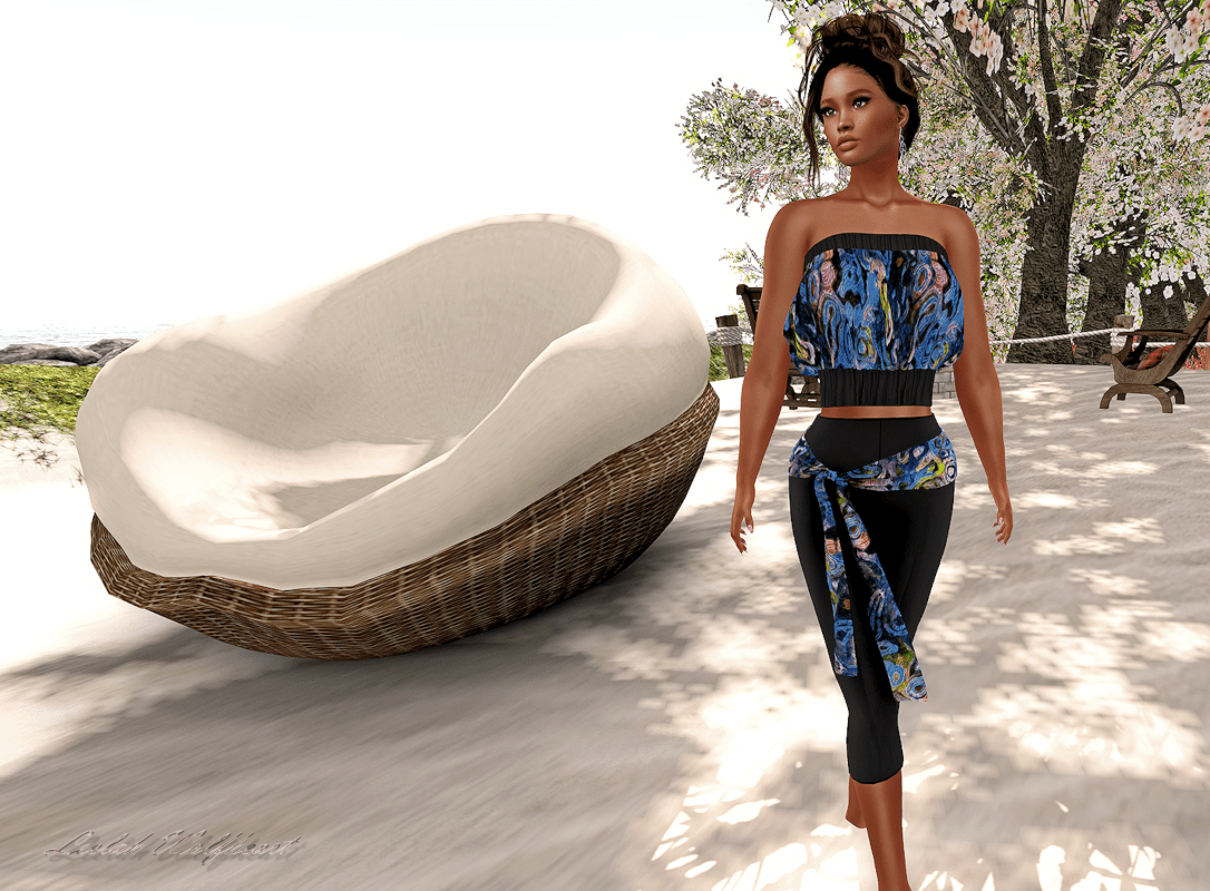 In meiner Region macht der RL Sommer gerade eine Pause und geht zum Frühling zurück. Glücklicherweise kann man in Second Life trotzdem die Sonne und das Sommer Wetter genießen. Luxe Paris hat für uns ein tolles Outfit um die Zeit zu genießen mit dem ‘FEARLESS Top&Capri’. Es ist so bequem zu tragen, daß was immer ihr auch plant es ist elegant genug für eine Tasse Kaffee im Café aber auch für einen Gang durch die Stadt. Genauso könnt Ihr es aber auch am Strand tragen, so wie ich es gerade mache. Die Größen sind für die bekanntesten Meshbodies und somit bleibt Euch nur noch Auszuschwärmen und zu genießen