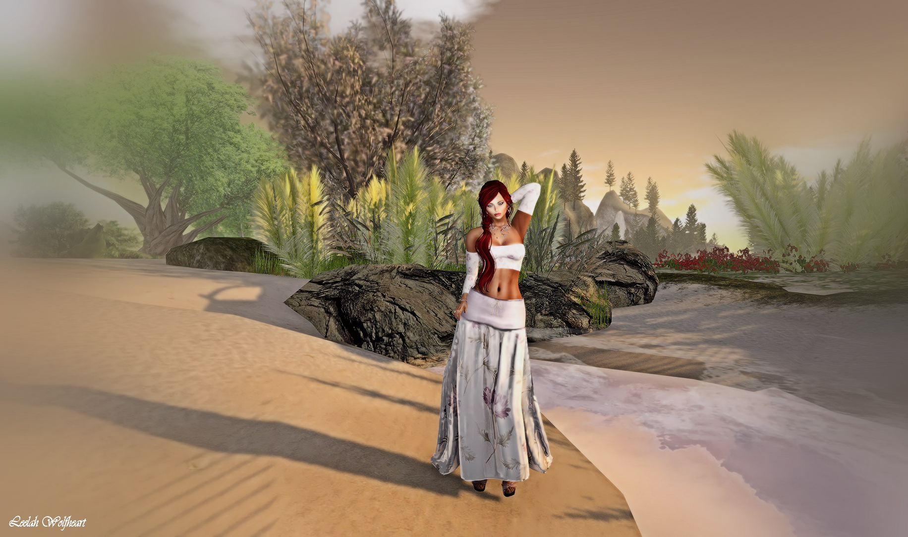 meine neue Heimat in SL ist fertig und fühlt sich wieder wie ‘zu Hause’ an. Brauchte ein bisschen Arbeit damit es wieder heimisch war. Wie üblich reicht es ja nicht die Möbel zu transportieren. Du hast immer mehr zu tun und sei es nur, daß die Lampen nicht so arbeiten wie sie sollen, irgendwas ist weg und Du kannst es nicht finden egal ob Du dafür gesorgt hast alles ist gut verpackt für den Umzug. Als ich fertig war fand ich in meinen Boxen ein hübsches Ensemble von Sassitude mit dem Namen ‘ Bohemian Rapsody’. Es ist das Exclusive outfit für das kürzlich gestartete ‘Inspriation Event’, das noch die nächsten drei Monate bis zum 1. Juni 2018 läuft. Also hab ich es angezogen und einen Spaziergang an meinem neuen Strand gemacht.  Oh wie war das erholsam. Die Größen für das Ensemble sind für die Meshbodies von Belleza, Slink und Maitreya. Es gibt dazu einen Hud für das Top und den Rock mit unterschiedliche Texturen. Dazu trage ich meinen neuen Schmuck von AvaWay ‘Leah’ den Ihr beim ‘Make em Blush’ Event bekommen könnt das seine Tore am 28. März geöffnet hat. Es hat einen Hud um das Aussehen so zu ändern, wie ihr es mögt.