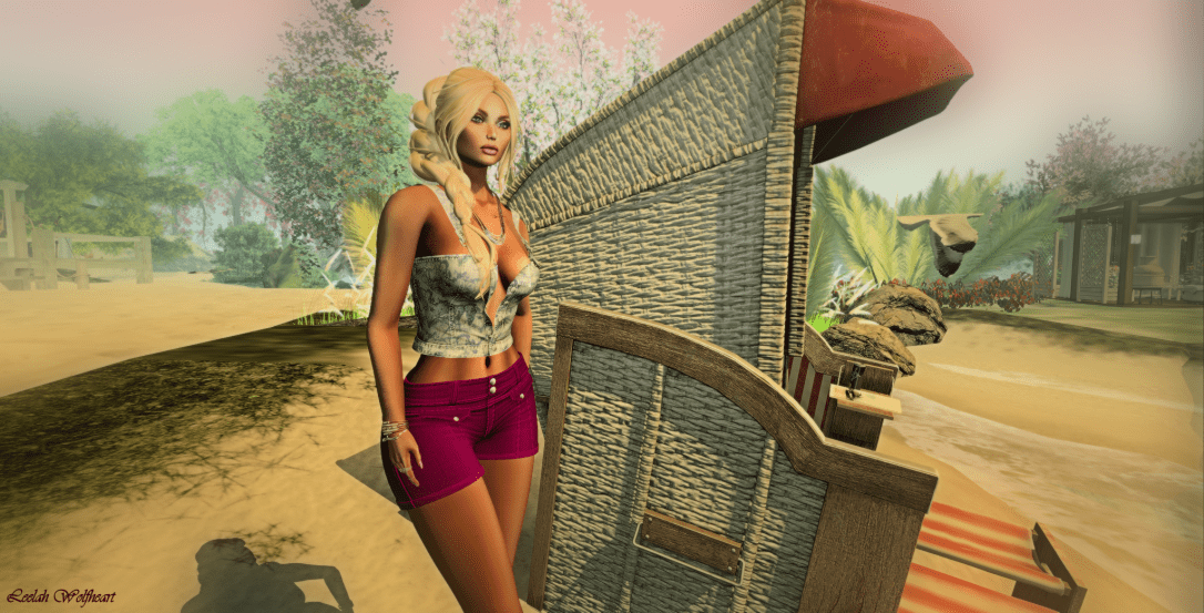 nach all der Hitze in meiner Gegend sind heute, nach einem heftigen Regen gestern, dankbarer Weise die Temperaturen ein bisschen runter und eine leichte Briese macht es aushaltbar, obwohl wir wieder die 30 Grad Marke erreichen. Also bin ich mal wieder durch SL gestöbert und hab mich an dem Platz wieder gefunden den ich so mag. Es ist die neue Devins Eye Sim gebaut durch Roy Mildor mit zwei Ebenen auf der gleichen Sim. Eine ist eine ist ein entspannender Ort mit Wasser und meinem Lieblingsplätzchen mit den Pferden und die Andere ist Wüstenlandschaft. Beides solltet Ihr Euch anschauen. Zum Besuchen meiner Freunde trage ich das Outfit von Smesh! mit dem Namen ‘Donna’, Ihr könnt es entweder im Club tragen aber auch in der Wildniss so wie Ihr sehen könnt.