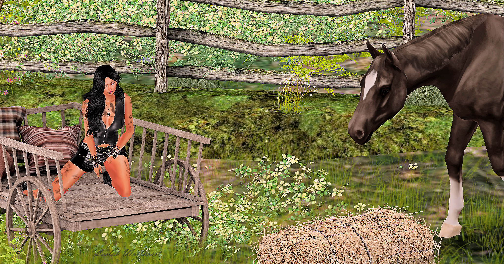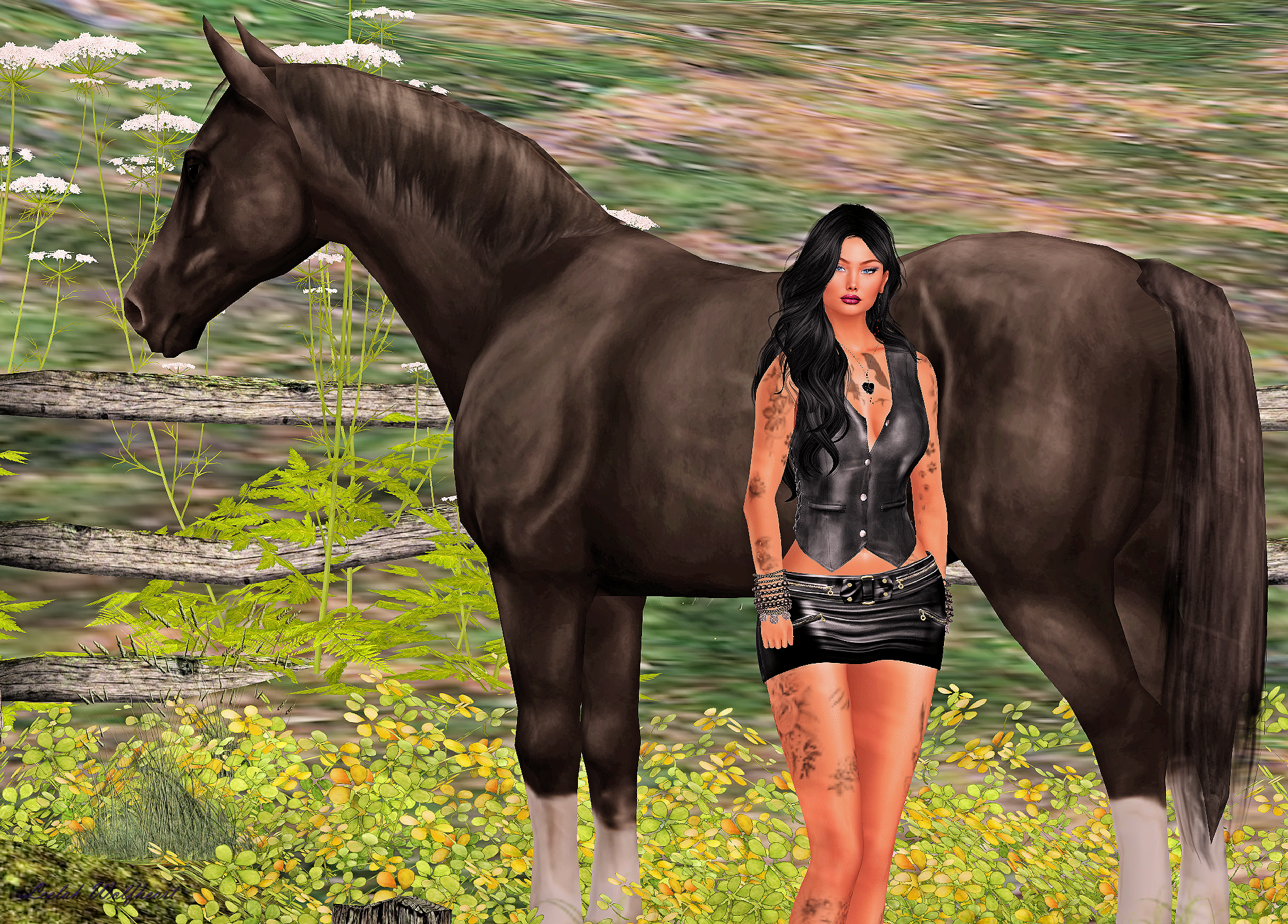 es ist schon ein bisschen her ich weiss, aber manchmal kommt man nicht zu dem was man mag, aber ich bin mega froh Euch heute wieder was tolles zeigen zu dürfen mit dem tollen neuen Outfit ‘Dentelle’ von Luxe Paris Fashion House. Ich war draußen als ich mit meinen beiden Jungs einen Spaziergang gemacht habe. Ich musste einfach etwas anderes in meine Gedanken bringen als diese schreckliche Hochwasser Kathastrophe die ganz nah bei mir passiert ist. Es sind so viele Opfer und Bilder wie im Krieg und es dauert die ganzen Menschen zu erreichen, auch wenn hier so viele helfen. Also lasst mich Euch was ganz tolles zeigen mit diesem Outfit. Es kommt mit einem Tanktop, einer Weste, Hose und Schuhen in den Größen von Belleza Freya, Slink Hourglass und von Maitreya für Lara und Petite. Und wen Ihr Tatoos mögt könnt Ihr sogar noch eine Blume auf Euren Arm zaubern. Also Mädels, wenn Ihr raus gehen wollt zum Berg erklimmen oder einem anderen Lauf in der Natur, dann möchte ich Euch dieses Outfit ans Herz legen.