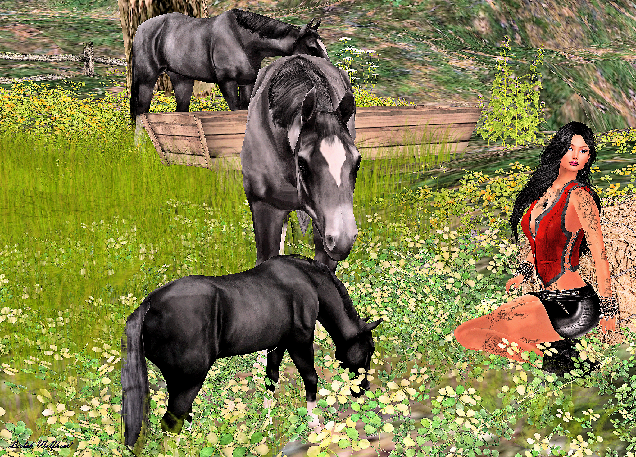 it is been a while I know but what shall I say sometimes you can’t do what you like but I am happy to bring you today a new outfit from Luxe Paris Fashion House to your attention. I was out for a walk with my buddies Snowpaw and Dark to get some other on my mind then the horrible flooding that happened a shortly close to my area. So many victims, a sceenery like war and even that there are so many helpers it goes slowly till all are reached and taken care of. So let me show you something awsome instead with the ‘Dentelle’ outfit from Luxe Paris. It comes with a tank, a vest, pants and even boots to finische the whole awsomeness. The sizes are for Slink Hourglass, Belleza Freya and Maitreya Lara & Petite. And if you like tatoos you can even add a nice flower to your arm. So girls if you like to go out for a hiking or what ever walk you like I highly recomend this awsomeness to you.
