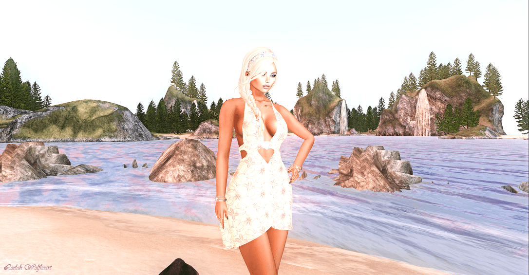 Continuum gives us a new ‘Sakura’ variation of the Cassandra dress as a group gift for Members of the ‘SL FREES & OFFERS GROUP’ in the mainshop. So when you have an empty group slot or even better you are a member of this group hurry up and get you this gorgeous dress into your closet. I am wearing with it the Cersei heels in the white with red dots variation. They are matiching fine together.