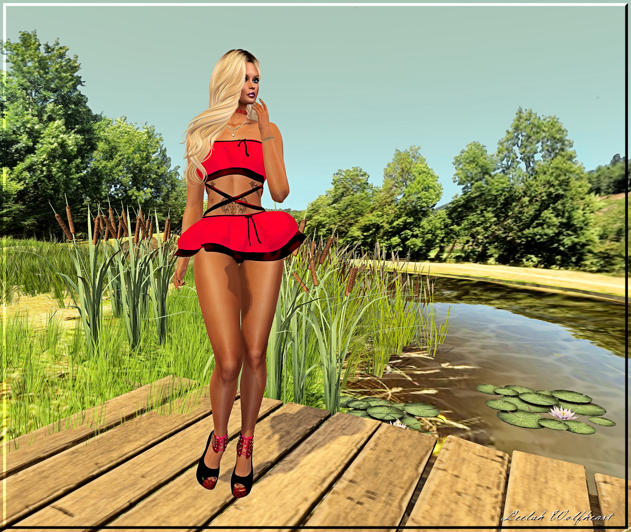 have you ever worn an outfit with your name? Well it is my first time and look what a sexy outfit ‘Leelah’ is. You can get it actually for 10L$ as a special offer in the VIP Group of Continuum. It includes a dress, a smexy thong and the choker for the meshbodies of Altamura, Belleza, Slink and Maitreya. With the Laura Pumps you have a nice outfit that you can wear when you flee the cold temperatures outside as I am doing actually in SL. Brrr my area is freezing actually so I am happy I can flee in SL into warmer areas.