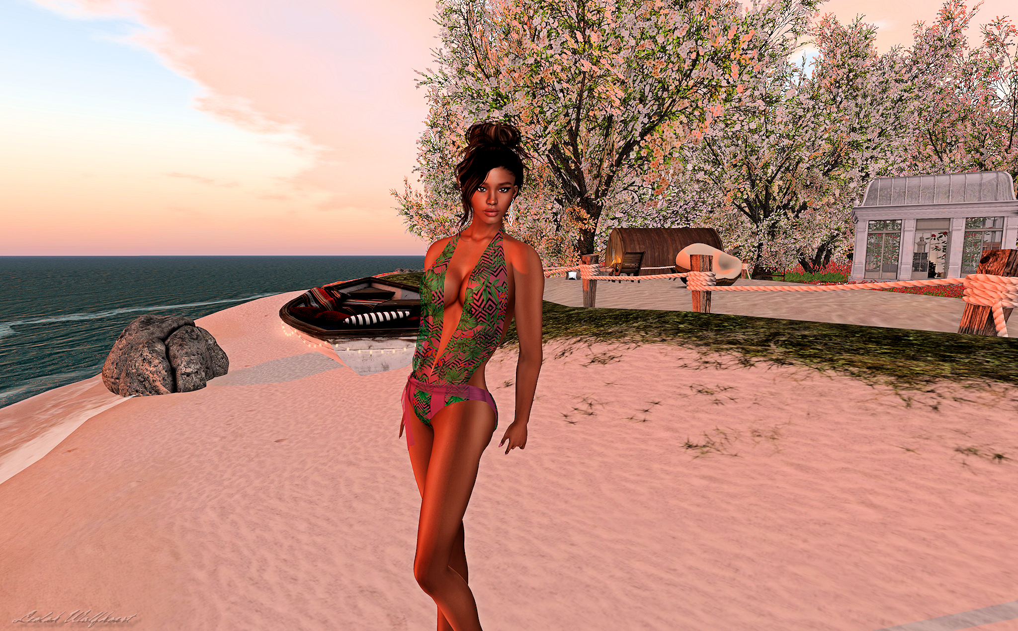 die letzten Tage waren grau, regnerisch und nicht wirklich animierend um in die Frühlingsstimmung zu kommen. So bin ich froh, daß wir in Second Life die Möglichkeit haben das zu erleben, was im realen Leben nicht möglich ist. Meine Süßen und ich sind an unsere Bucht gegangen und haben den warmen Wind genossen. Außerdem war das eine gute Möglichkeit die neueste Kreation des Hauses Luxe Paris Fashion House mit den Namen ‘Sunflower’ zu tragen. Ihr bekommt das Top mit den prächtigen Sonnenblumen darauf und eine Palazzo Hose, welches Euch eine elegante Möglichkeit gibt es bei Parties oder einem Abend mit Freunden zu tragen. Die Größen sind für Slink, Belleza, Legacy und Maitreya. Zu den Tieren mache ich einen eigenen Blog, aber soviel schon mal sie sind von Rezzroom.